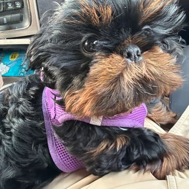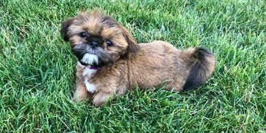 "After doing a lot of research, I learned about Jan and her beautiful Shih Tzus through Instagram. Right from the moment I reached out to Jan, it's been a wonderful experience. Jan has been so professional and caring throughout the entire process. When Lady Indigo's and Buster's litter was born, Jan kept me updated on weekly basis on the health and growth of the puppies. I had an opportunity to visit the puppies at 2 weeks, 4 weeks and then at pick up - 8 weeks old. I met my beautiful puppy Xena when the litter was 2 weeks old and fell in love right away. I couldn't stop thinking about her and was so excited to bring her home. Xena was born 3.24.19 and she is the sweetest little pup ever. She is so playful and I can't imagine my life without her now. She has an amazing personality. While she is sweet, she is also feisty...and why her name "Xena" fits her perfectly (Warrior Princess) she's got a bit of both and I love it. She is energetic, smart, loving, and listens well. She is five months old now and turns heads every single time we go out for a walk. Her fur color is so beautiful. She's inherited a little bit of her mom and dad's color (gray, white, brown, black, and orange)...she's the best.